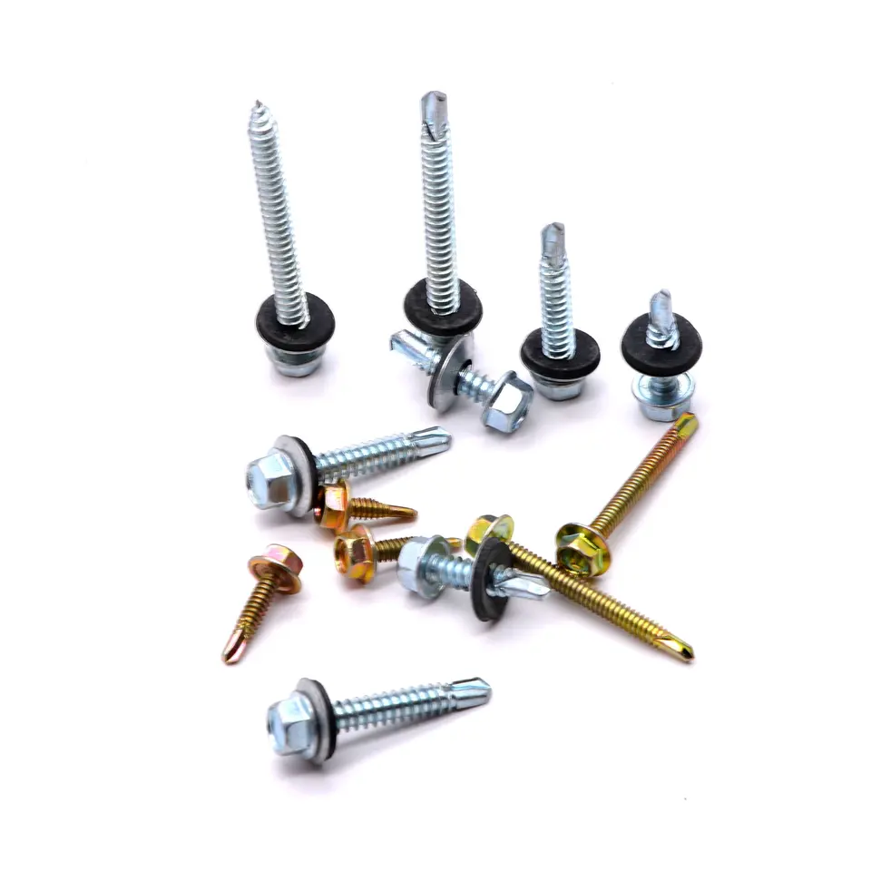 Roofing Screw Hex Flange With Rubber Washer Hex EPDM Washer Head Self Drilling Screw Material: C1022/1022A Head type: wafer, countersunk, pan, framing, bugle, combination Surface Treatment: White/Yellow Zinc Plated. Thread: fine thread Diameter: 4.2mm Length: 9.5mm to 55mm Point: TEK Drill point, Sharp point, Standard: DIN / ISO / GB Packing: Bulk packaging in woven bag or carton, Color box & carton packaging Logo: If you need, we can provide logo customization servic Delivery time: Normally in 15-30 days Payment term: 30% TT in advance and 70% TT before shipment Usage: Building construction, decoration field, wooden furniture, electrical component, household etc