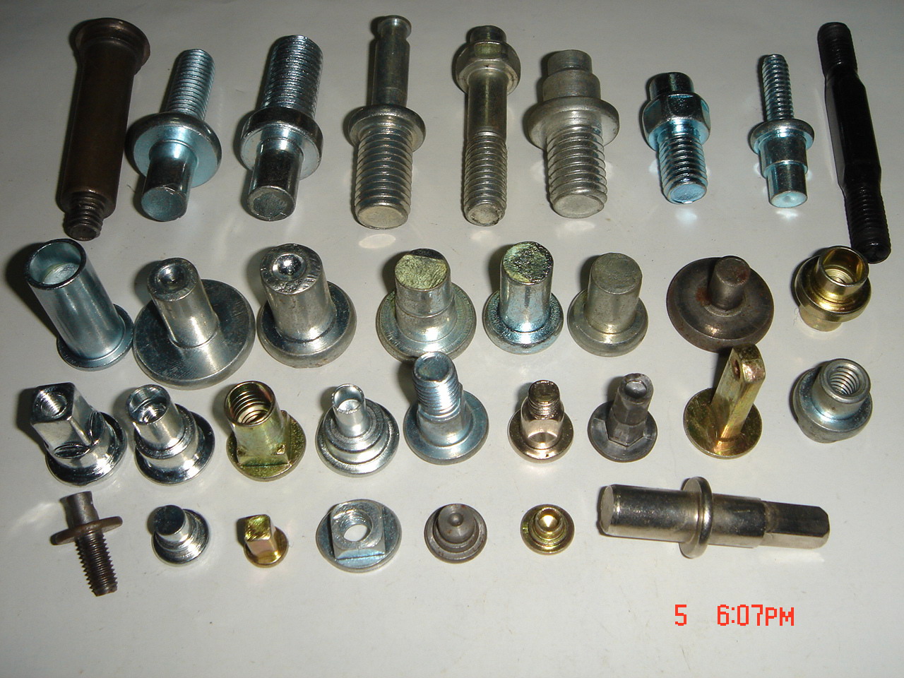 SCREW(BOLT): 1.HEX HEAD CAP SCREWS. 2.HEX HEAD MACHINE BOLTS. 3.HEX LAG BOLTS. 4.T HEAD BOLTS. 5.CARRIAGE BOLTS 6.HEX SOCKET CAP SCREWS. 7.SELF TAPPING SCREWS. 8.SELF DRILLING SCREWS. 9.DRYWALL SCREWS. 10.CHIPBOARD SCREWS. 11.WOOD SCREWS. 12.MACHINE SCREWS. 13.FURNITURE SCREWS. 14.CASTER SCREWS. 15.HOSE CLAMP SCREWS. 16.HINGE SCREWS. 17.BIG SIZE BOLTS 18.SPECIAL LONGER SDREWS 19.SCREWS AND WASHERS ASSEMBLED 20.ALLOY STELL SCREWS 21.SOCKET SET SCREWS 22.SPECIAL SCREWS OR BOLTS RIVET: 1.SEMI TUBULAR RIVET. 2.BRASS/ALUMINUM/STAINLESS SEMI TUBULAR RIVET. 3.SPLIT DRIVE ANCHORS. 4.BLIND RIVETS. 5.BLIND NUTS. 6.BLIND RIVET NUTS. 7.OTHER SPECIAL RIVETS.