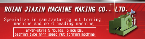 We introduce the foreign production of advanced technique to make 5 moulds, 6 moulds, extended, bearing type high speed nuts and elements, many work position cold extrusion machines, cold Dui machine, it is compact to have structure and rigidity is high, operating, maintenance the characteristics such as convenience. Book equipment application in automobile, motorcycle, machinery foundation profession (such as chain, fastener, bearing, box spanner, tool, special different type nut and flange surface nut, sides nut, welding nut, cover type nut , locknut, defence pine nut, pull hat nut, chain Luo pull, expansion gecko, independently axle gear, bicycle different type etc.) etc. various different type , complex is not mark cold squeeze into type, suitable scope extensive.