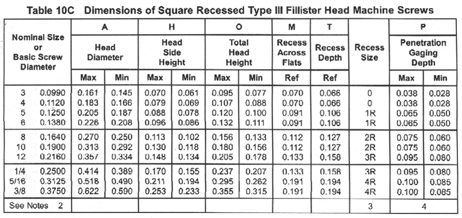 Square Recessed Type III Fillister Head Machine Screws